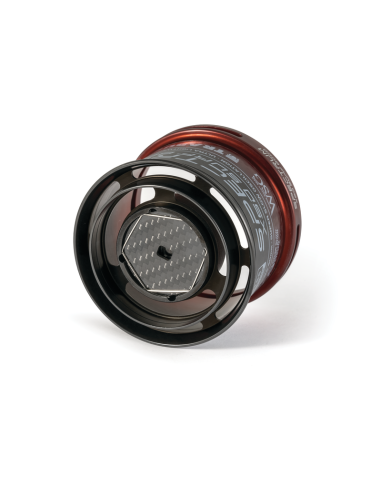 • Carretéis: Inclui dois carretéis de alumínio super leves (um azul e um vermelho, ambos com a mesma capacidade) com perfil cônico e raso, ideais para o uso de linhas finas e longos arremessos.